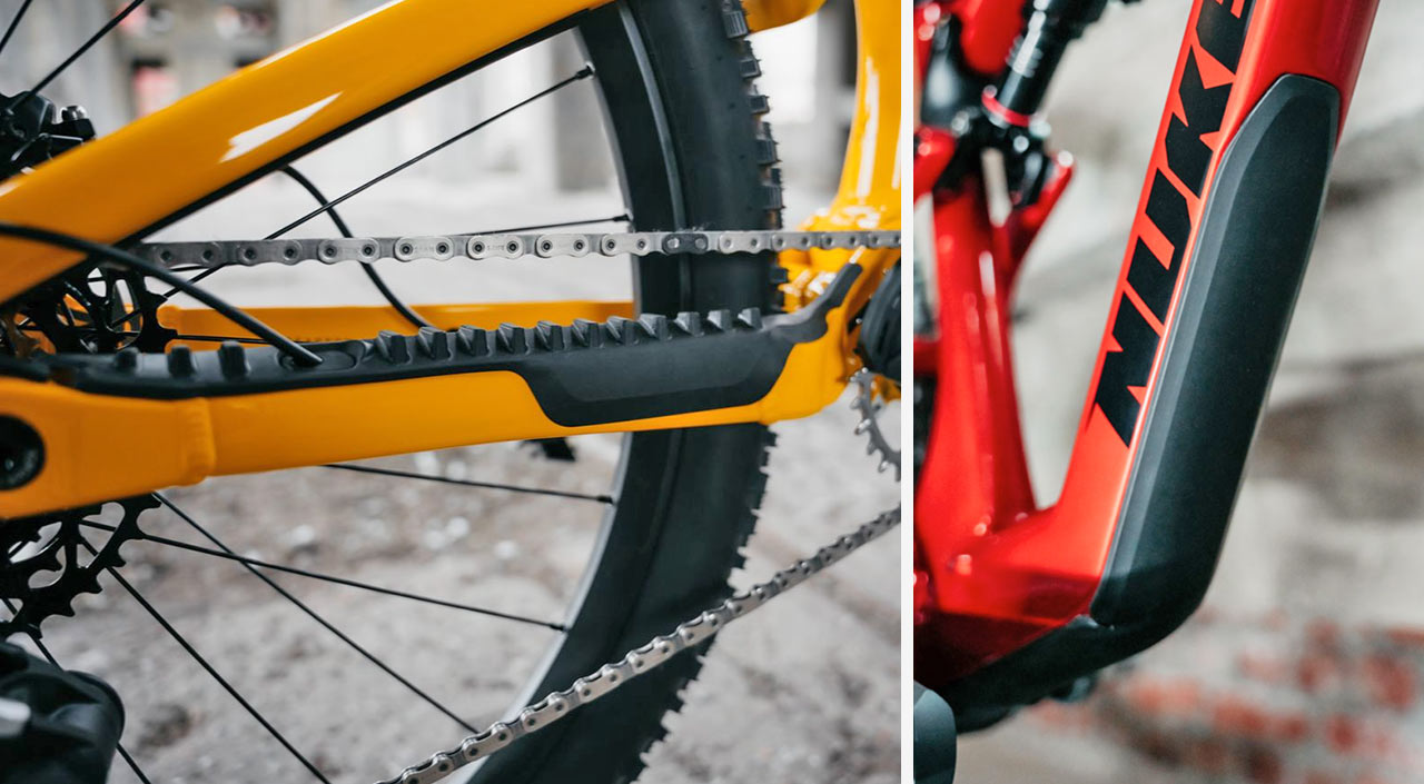 Konstrukce rámu disponuje interním vedením lanek v trubičkách, což zajišťuje snadný servis, ale současně není komplikována integrací vstupů hlavovým vedením. V rámu pak najdete ložiska MAX Bearings, která by měla dlouho vydržet v náročném provozu, a klíčová místa rámu jako řetězovou vzpěru nebo dolní část spodní rámovky chrání 3D gumové kryty proti oděru a hluku řetězu.