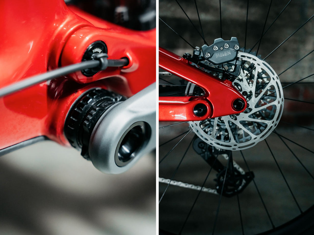 Obě verze sdílejí klasické čtyřčepové zavěšení (Horst link), které poskytuje 140 mm zadního zdvihu. Systém je naladěný tak, že by měl být citlivý na menší nárazy, ale současně dává oporu ve střední části zdvihu, takže kolo zůstává živé a stabilní i během silového šlapání.