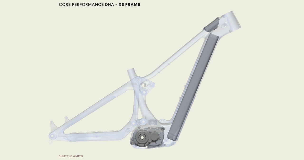 Pivot Shuttle AMP’d v hierarchii značky vyplňuje prostor mezi precizností modelu Shuttle AM a sjezdovou dominancí verze LT. Je navržen pro jezdce, kteří vyžadují vysoký výkon a agresivní projev, ale chtějí zachovat hbitost. Největší rozdíl je v pohonné jednotce. AMP’ je vybaven motorem Avinox M2S.