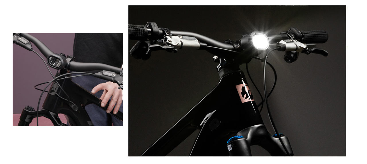 Systém osvětlení: Kolo je připraveno na přímé napájení předního i zadního světla z hlavní baterie. Osvětlení lze ovládat přímo přes dotykový displej.