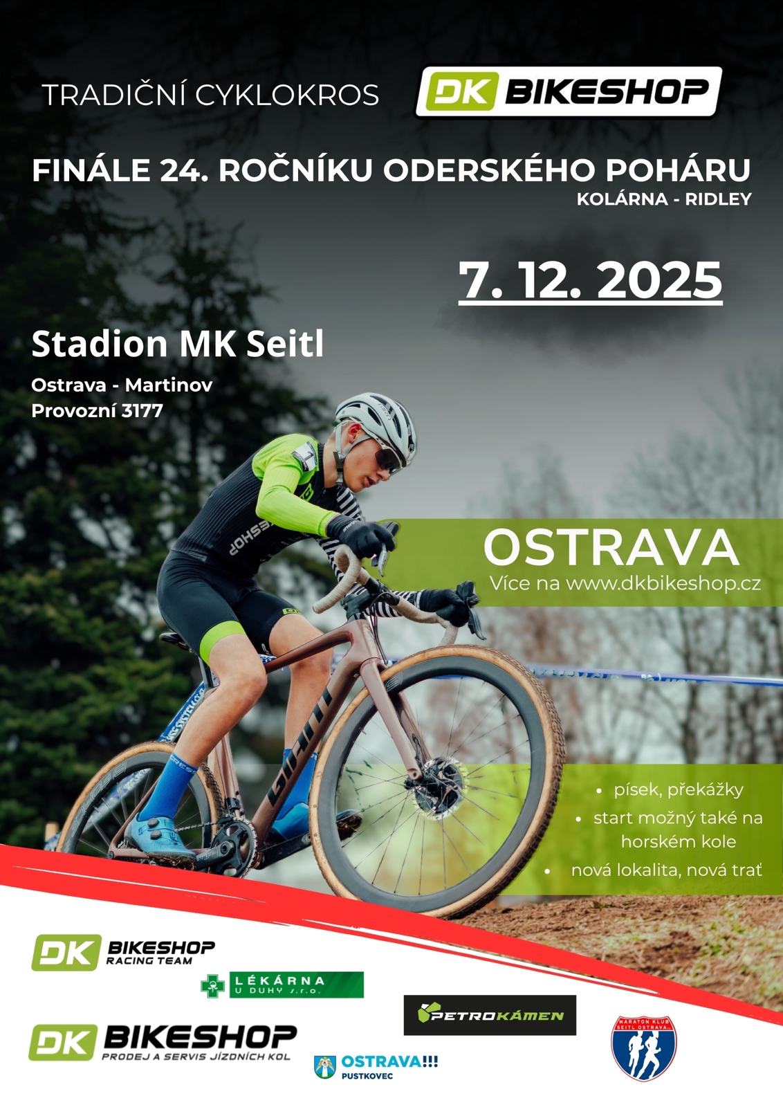 V neděli pak proběhne poslední závod letošního Oderského poháru, s celkovým vyhodnocením celého seriálu. Tady si může zazávodit opravdu každý, bez rozdílu věku, pohlaví nebo cyklistických zkušeností. Jedná se o cyklokrosový závod, ale start je možný opět také na horském nebo například gravelovém kole.