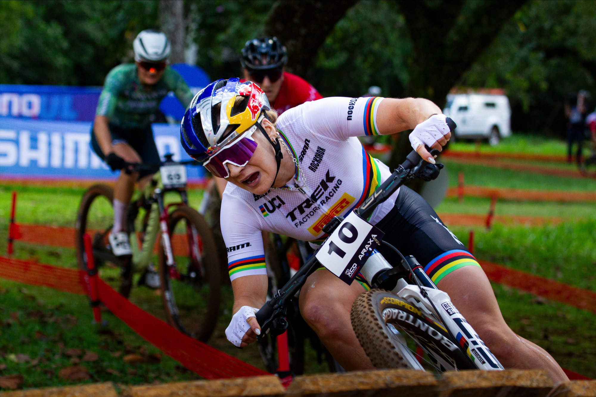 Úřadující mistryně světa Evie Richards byla hrozbou po celý závod, byť se na samotném čele příliš neobejvovala, spíše si hlídala soupeřky. Z velká skupiny závodnic se do závěrečného 7 okruhu hnala jako první Nicole Koller (SUI, Ghost Factory Racing) a Jenny Rissveds (Canyon CLLCTV XCO) těsně následovaná právě Evie, která nakonec rozhodla až v dlouhém nástupu před cílem, který soupeřky nedokázaly pokrýt.