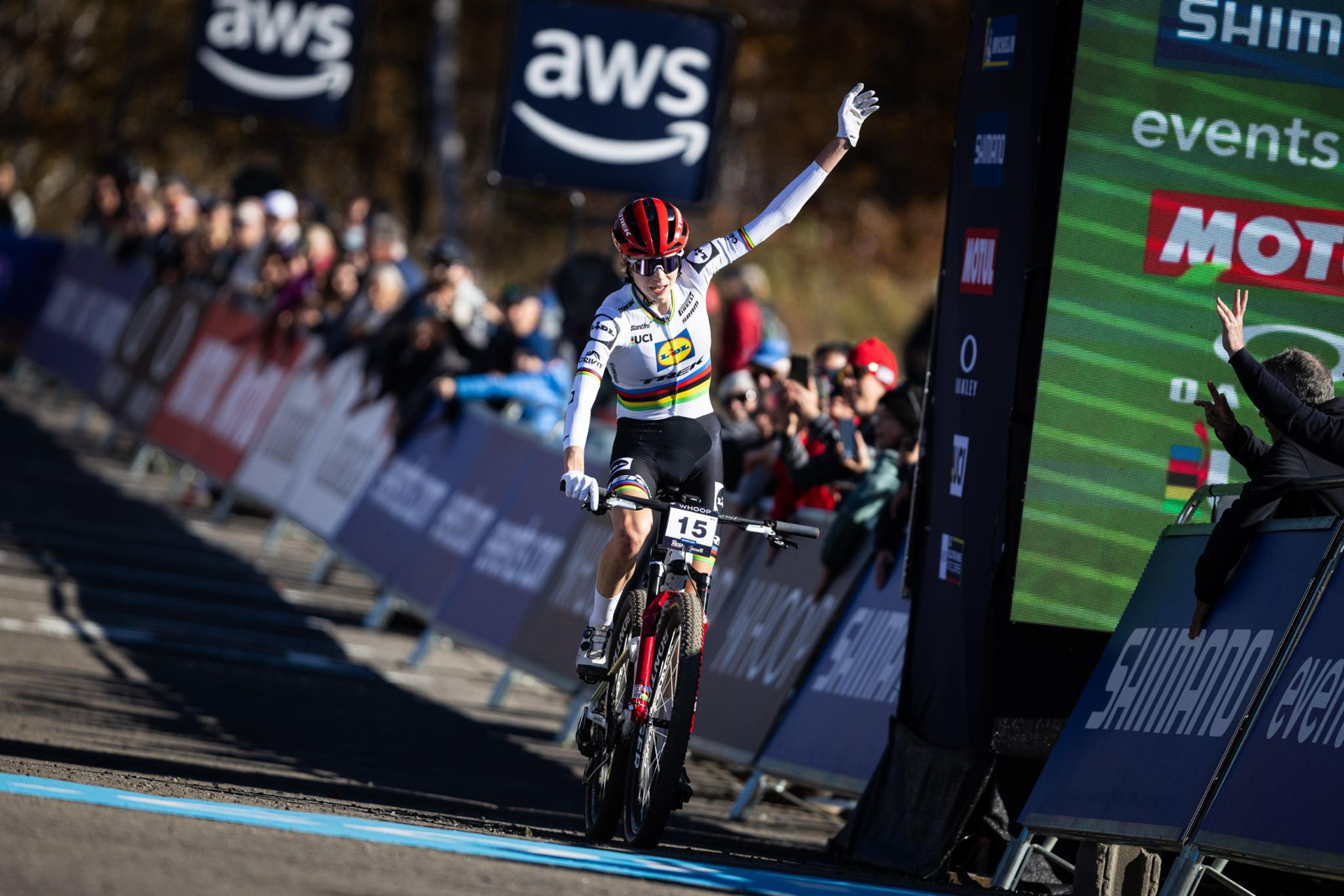 Domácí Isabella Holmgren (Lidl–Trek) slavila po pátečním triumfu v short tracku i zlato v cross country v kategorii U23 vítězství . „Byla jsem odhodlaná zůstat v klidu a hlavně nespadnout na stejném kameni jako vloni,“ smála se Kanaďanka, když vzpomínala na svůj drsný pád, kvůli kterém musela vloni odstoupit.
