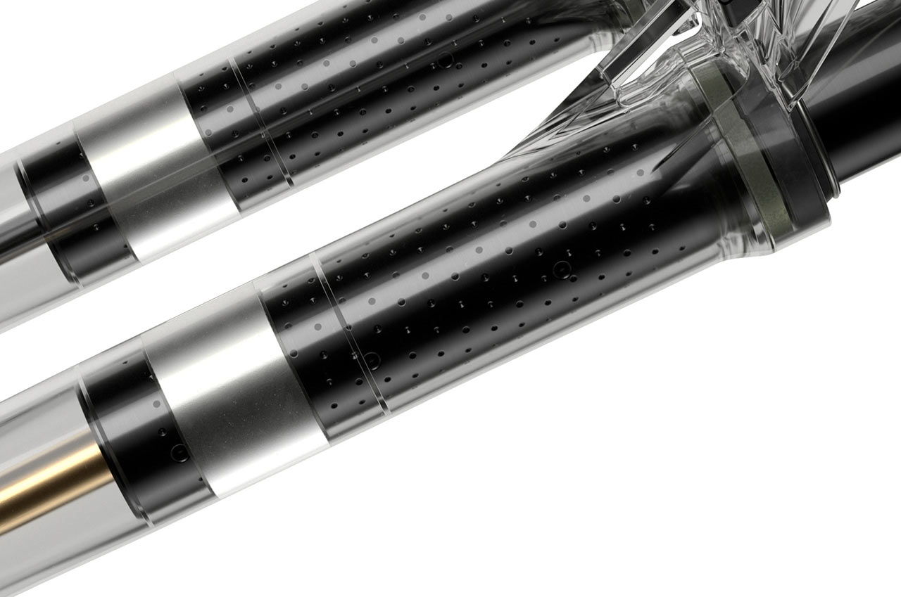 Zásadní, již zmíněnou novinkou, je vzduchová pružina LinearXL, která přináší lineárnější průběh zdvihu a zároveň omezuje vnímavost chodu na rychlost stlačení. Výsledkem je projev, který je jemný na začátku a stabilní ve středu, přitom nabízí dostatek opory při agresivní jízdě. Důležitou roli hraje i nově doplněný systém Adjustable Bottom Out (ABO), který umožňuje samostatně (zvenku) doladit chování v závěru zdvihu bez zásahu do základní křivky odpružení.