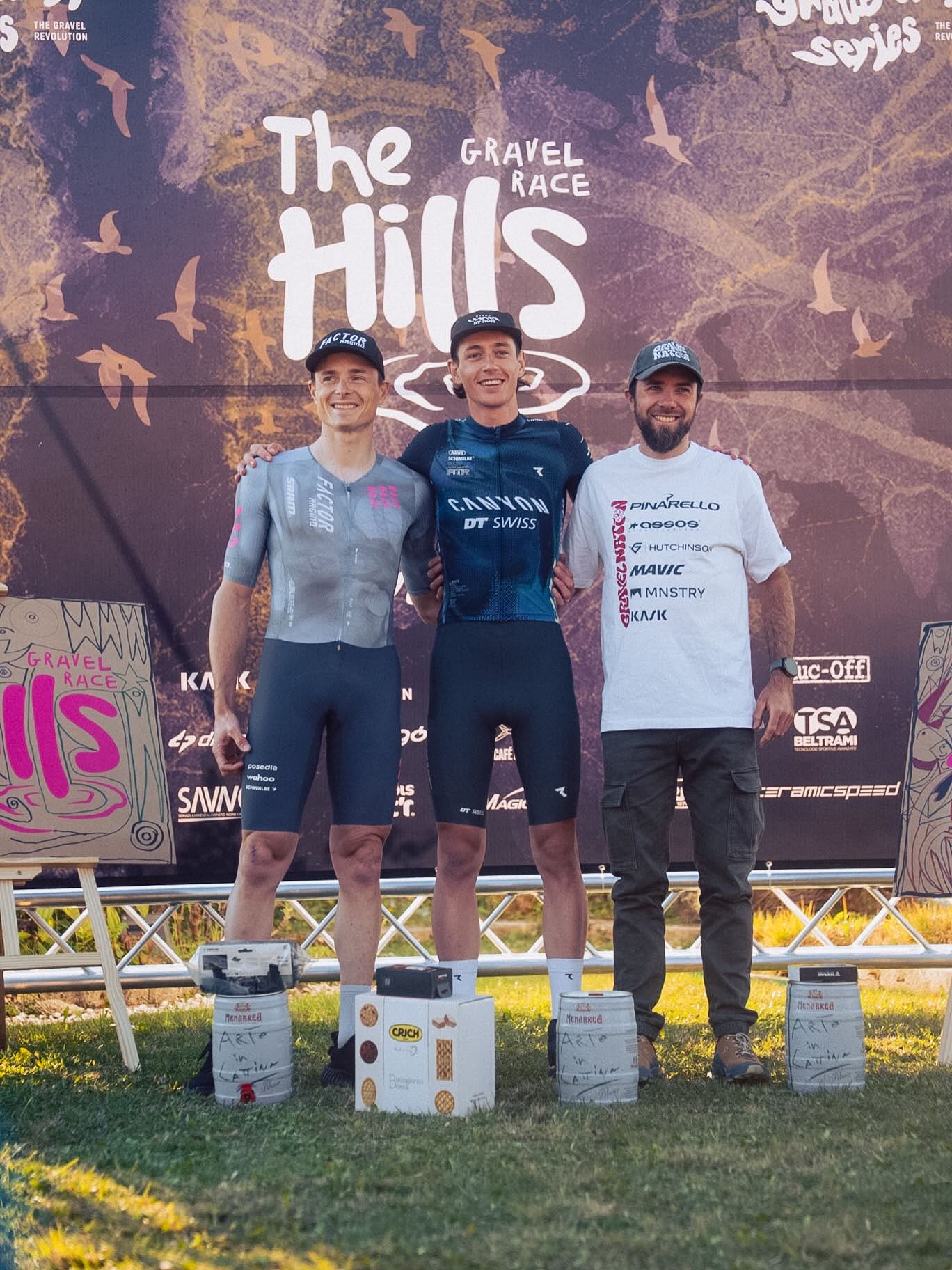 Druhý podnik série Gravel Earth Series, závod The Hills v oblasti Prosecco (125 km / 1 920 m), přinesl atraktivní podívanou na rychlé, ale zároveň technicky náročné trati. Profil závodu kombinoval dlouhé šotolinové úseky s techničtějšími pasážemi, které nedovolily vytvořit výrazný náskok a držely peloton dlouho pohromadě. Právě variabilita terénu nakonec sehrála klíčovou roli – rozhodovalo se až v závěrečných desítkách kilometrů. Z vítězství se radovali členové týmu Canyon DT Swiss ATR Američan Bradyn Lange a Larissa Hartog z Nizozemska. Český šampion Petr Vakoč skončil druhý.