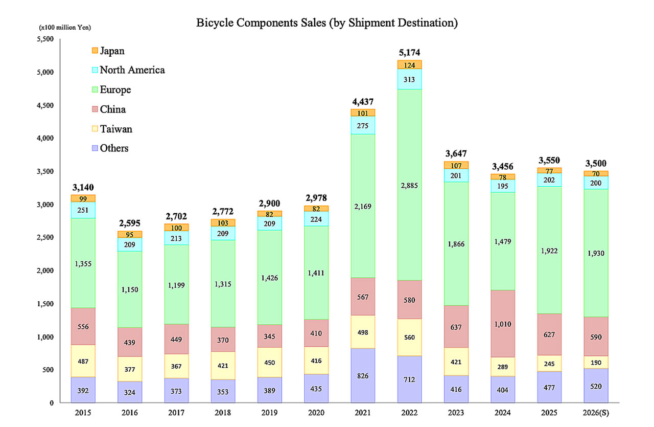 Situace na jednotlivých trzích zůstává stále nevyrovnaná. V Evropě se podle Shimana projevil zimní útlum a slabší prodeje kompletních kol, přičemž zásoby na trhu zůstávají v některých regionech stále relativně vysoké.