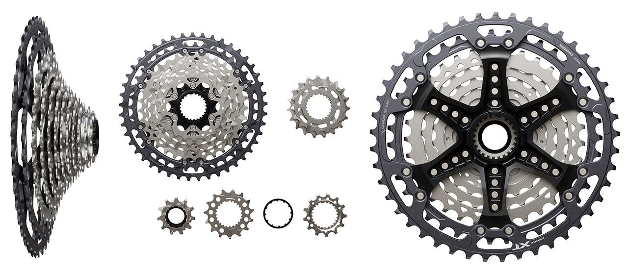 S kazetami u nového Shimana se to má tak, že jsou dvě, s tím, že jedna je v podstatě stávající 10–51z. kazeta kompatibilní s Micro Spline ořechem, a ta druhá je novinka s rozsahem pastorků 9–45z. Tady jde v podstatě o levnější alternativu ke stejně poskládané kazetě XTR.