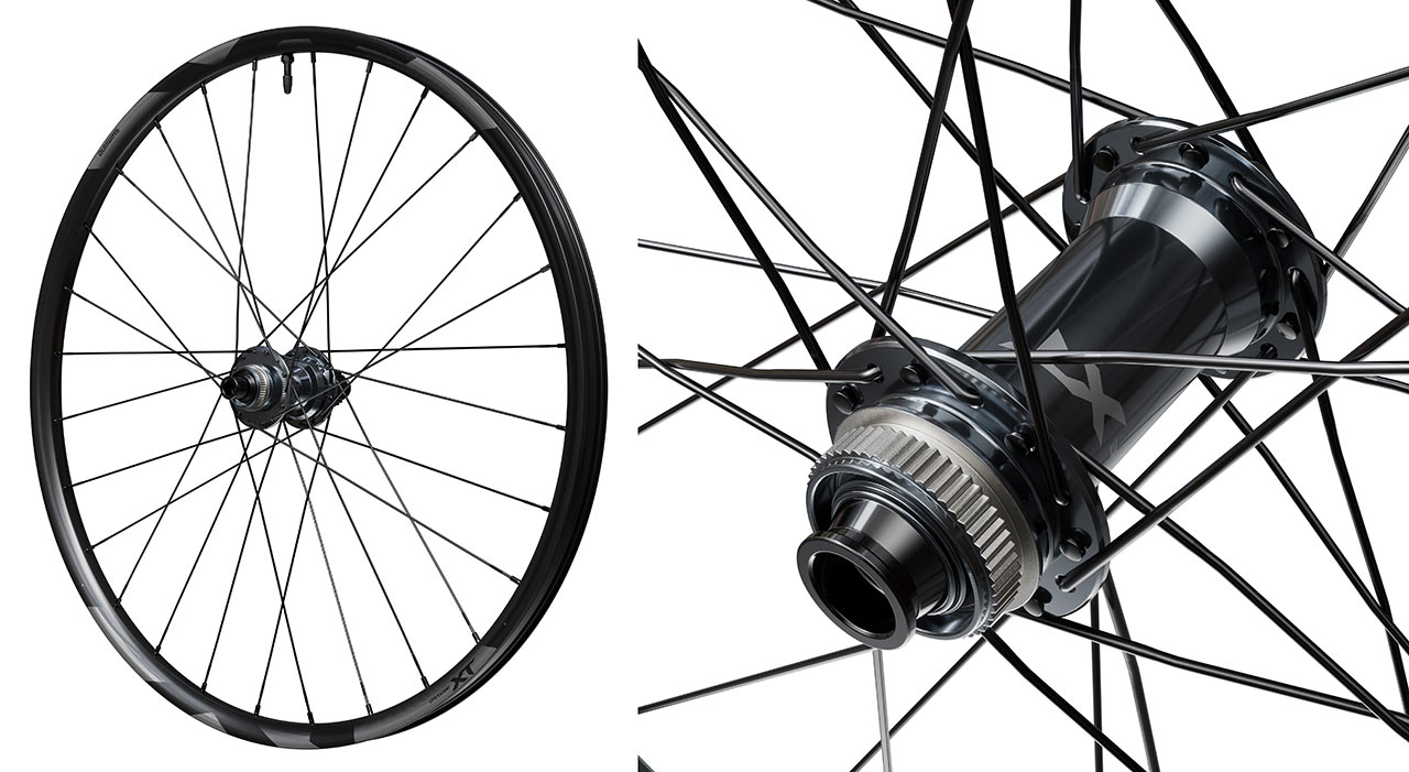 XT nabízí alu ráfky s vnitřní šířkou 30 mm, 28 děr a moderním asymetrickým profilem, zapletené na náboje M8210 s 3,5° záběrem. Náboje lze pořídit také samostatně, a to ve variantách 28/32 děr, Boost 148 mm.