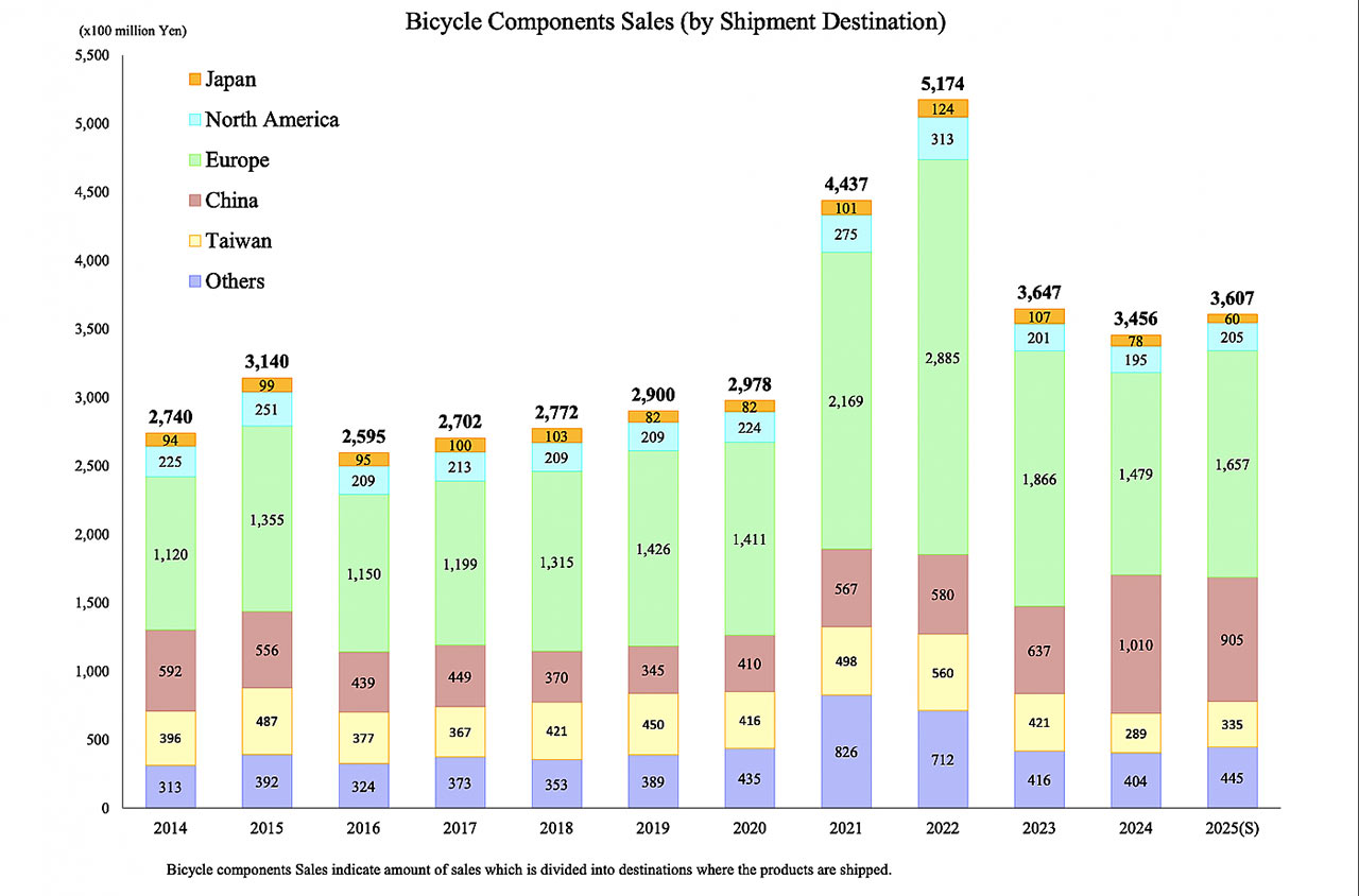 Segment cyklistických komponentů zaznamenal výrazné zlepšení, přičemž provozní zisk vzrostl o 38,5 % na 14,5 miliardy jenů. Společnost uvedla, že globální zájem o cyklistiku zůstává silný, ačkoli zásoby na trhu zůstávají na vyšší úrovni. V Evropě se objevují známky oživení maloobchodního prodeje kompletních jízdních kol, zatímco v Severní Americe zůstává prodej slabý, ale zásoby se vrátily na normální úroveň.