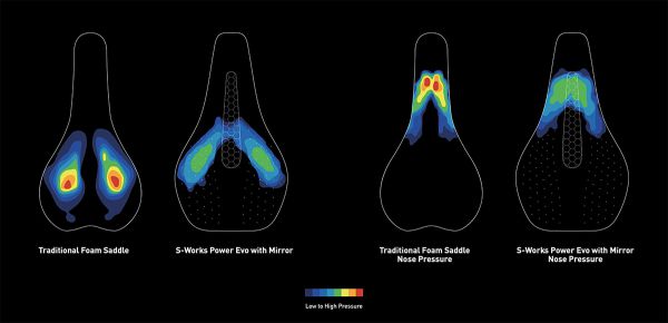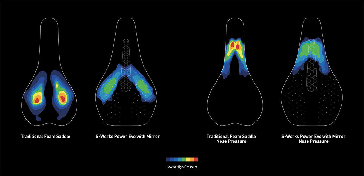 Vývoj nového EVO modelu probíhal během více než 500 hodin testování, zahrnoval různé typy jízdy (silnice, gravel, XC i trail) a podrobnou analýzu pomocí tlakových map. Testovalo se ve třech scénářích: při výkonovém testu, s upravenou pozicí a v aero poloze "na hraně". Zaznamenáno bylo přes 160 000 datových bodů, které vedly k jasnému závěru – S-Works Power EVO s Mirror technologií je aktuálně nejpohodlnější sedlo, které Specialized nabízí.