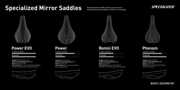 Specialized představil zcela novou generaci své vlajkové lodi mezi sedly modelem S-Works Power EVO s technologií Mirror. Navazuje na populární Power s Mirror technologií, ale přináší zásadní konstrukční změny a ergonomická vylepšení, která cílí na jezdce preferující dynamický styl jízdy a častější přesuny na sedle související se změnou jízdní pozice. Výsledkem je sedlo, které se přizpůsobuje jezdci, nikoli naopak.