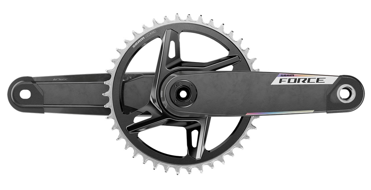 Force AXS přichází s komplet novými klikami s integrovaným měřičem výkonu přímo v převodníku, který dokáže pracovat s přesností měření ±1,5% bez vlivu změny teploty a vyhodnocuje rovněž symetricitu šlapání obou nohou. Kliky jsou současně v novém designu a jsou vyrobeny podobně jako vodítko přehazovačky z karbonu.
