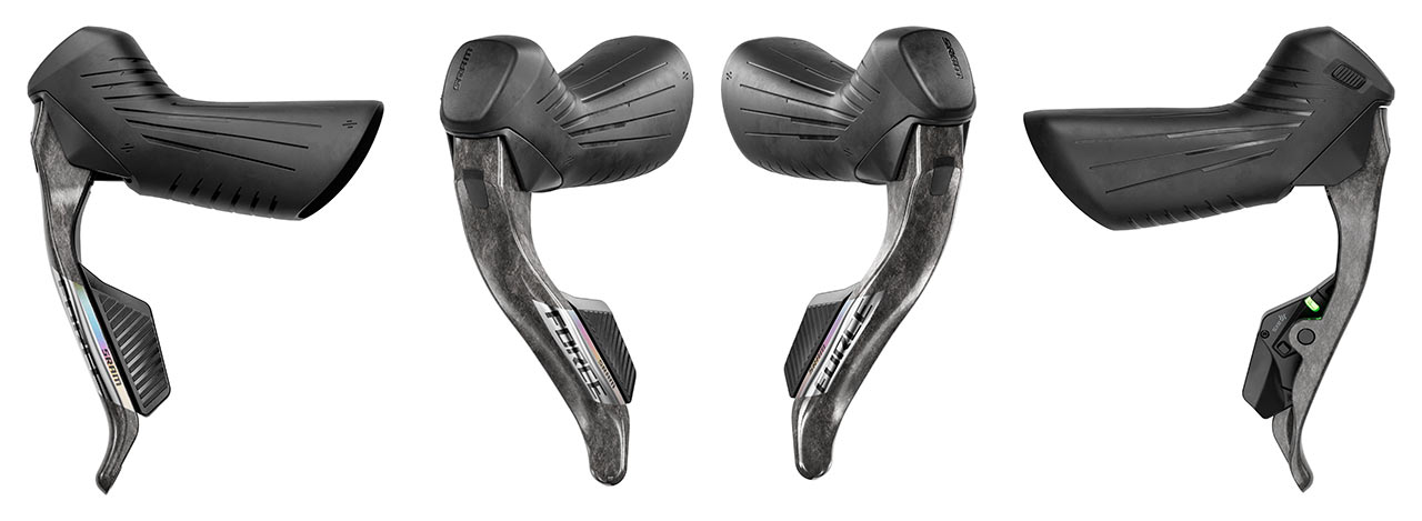 Force AXS seda se dočkala zásadního přepracování ovládacích prvků. Asi největší ergonomickou změnou si prošly bzdové páky které mají nově výše umístěný čep brzdové páky a spolu s ním i kompletně přepracovaný tvar těla páky, což umožňuje především lehké a účinné brzdění jedním prstem, a to nové i z horního úchopu.