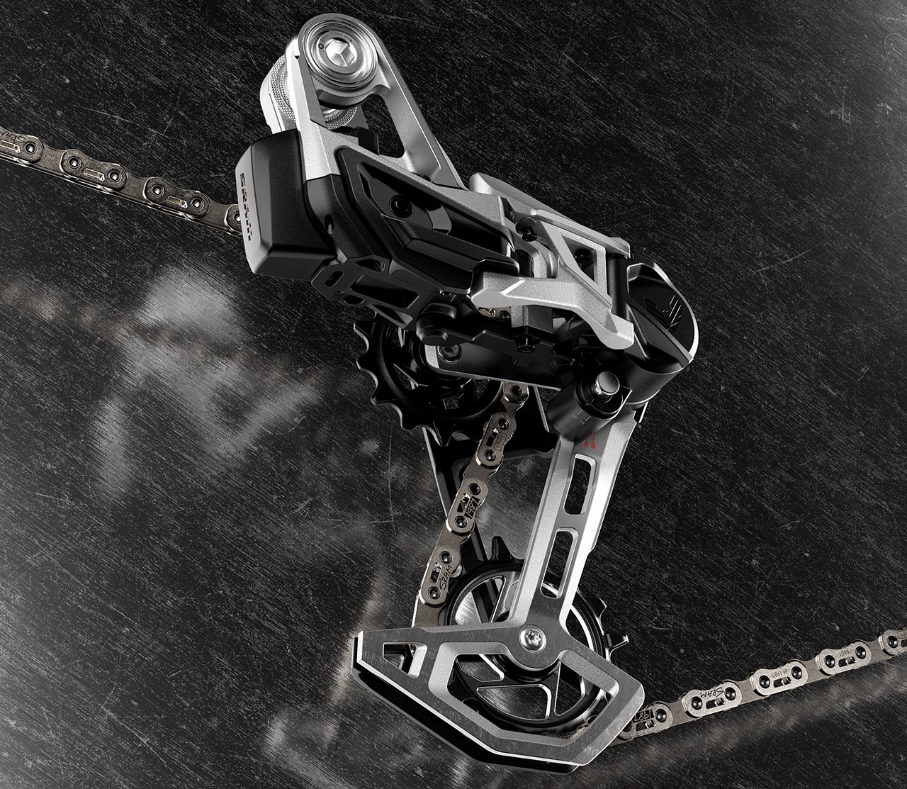 Hlavní komponenta řazení - přehazovačka kombinuje odolnost modelu XX s odlehčeným tělem nejvyššího modelu XX SL. Stříbrná barevná varianta vypadá ikonicky a svým designem se snaží plně ladit s ostatními komponenty této sady, přičemž designově jde klasickou T-Type bezdrátovou přehazovačku se vším co k ní patří.