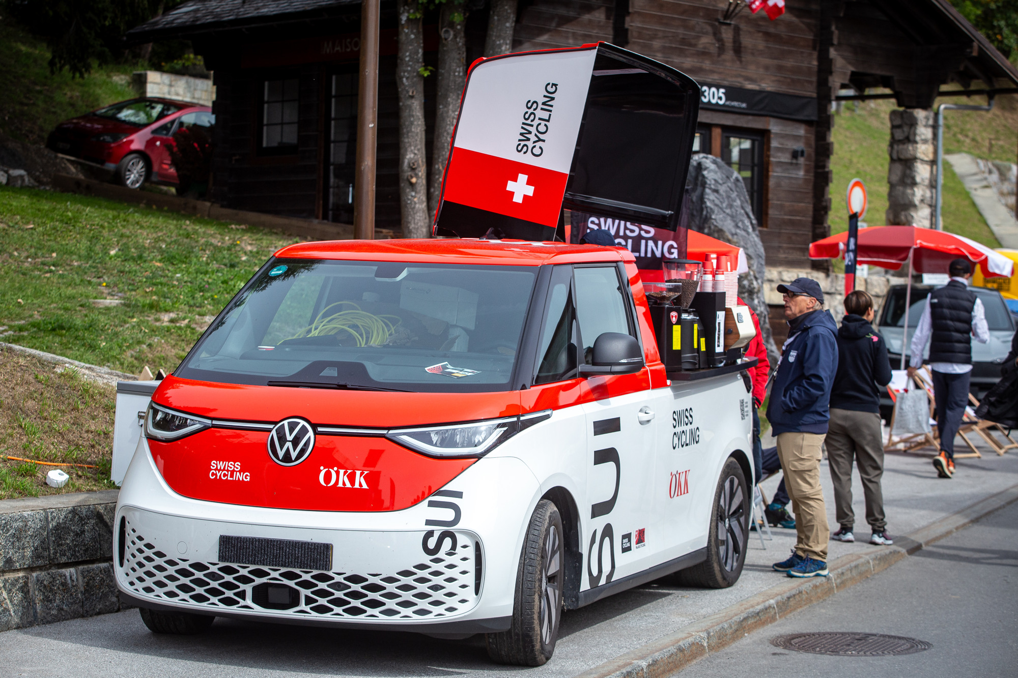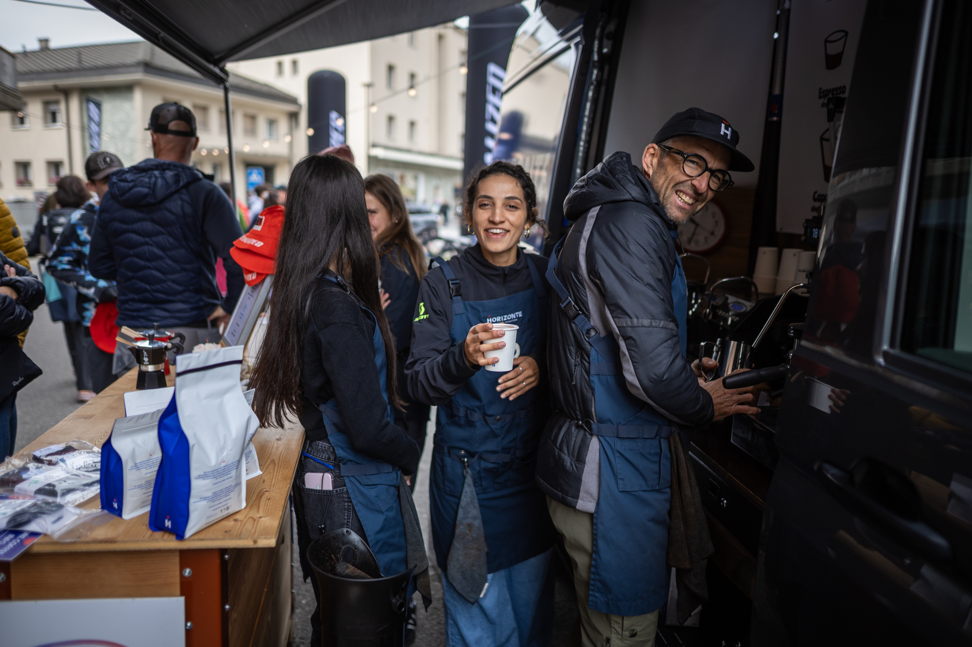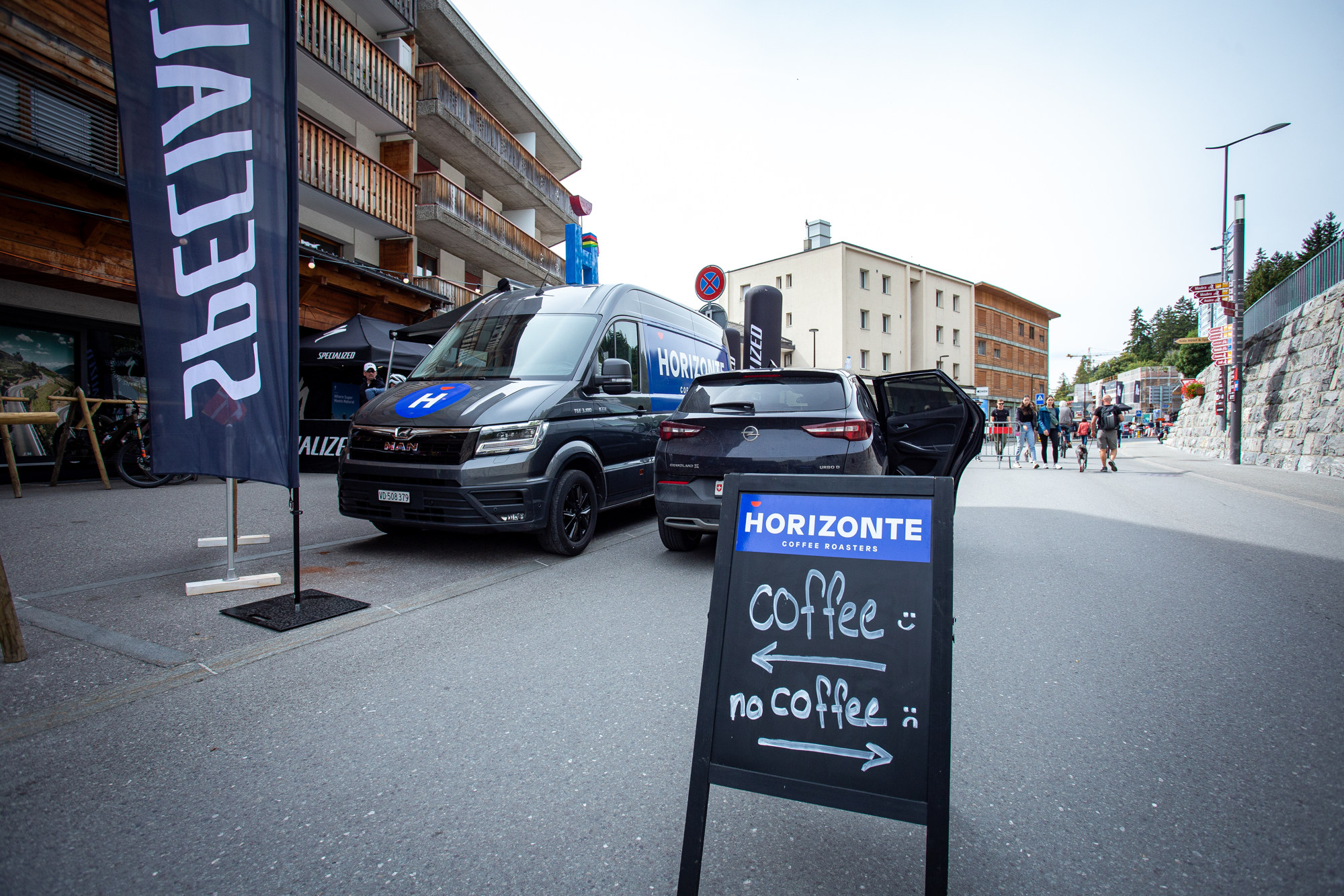 Krásná expozice, která nabízela partnerské zázemí, místo pro setkávání se závodníky, butik a pak nápaditou kavárnu. Neodolali jsme, ceny přesahovaly i ty nejvíc hipsterské pražské kavárny za 160 Kč. Pohled ale stál za to. Švýcaři zkrátka závody uspořádat umí.