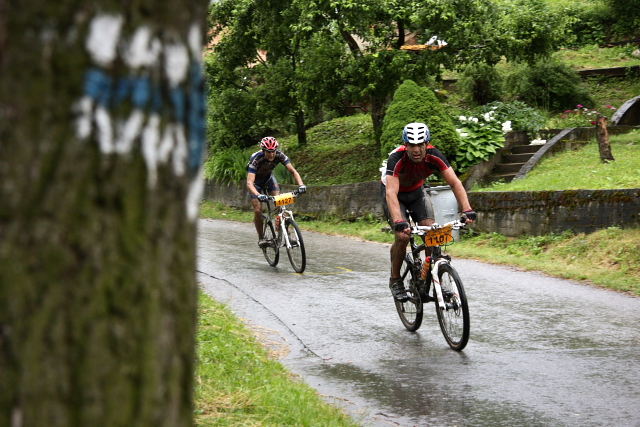 O něco dále se napojili na trasu, kterou jim již „vyčistili“ půlmaratonci. Po trase půlmaratonu trať pokračovala přes Bodinu a Vrchteplou do Súlova, což ale ještě nebyl konec utrpení. Následoval výjezd proložený výšlapy po kamenných schodech mezi skalami a i v dalších kilometrech pokračoval film s názvem „Author Bikemaratón Súľovské skaly“ v podobném scénáři – blátivé singletraily, mokré louky a všudypřítomná voda.