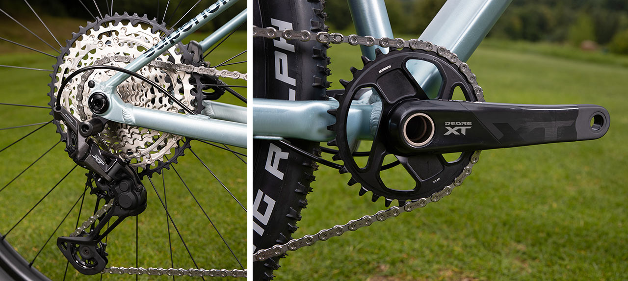 Geometrie vychází z karbonové modelové řady XP – s delším reachem, kratší zadní stavbou a nižším těžištěm pro větší stabilitu i jistotu v technických pasážích. Najdete zde plně integrované vnitřní vedení kabeláže, patku standardu UDH a také Boost rozteč zadní pevné osy. To vše dodává rámu čistý vzhled a moderní technické parametry.
