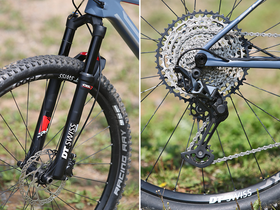 O prémiovost se tu navíc stará také DT Swiss vidlice OPM O.D.L s klasickým zdvihem 100 mm a vyvedeným lockoutem na řídítka; spolu s ní nesou logo téže značky také zapletená kola DT Swiss X 1900 Spline DB25. Jde sice o základní model, ale přeci jenom v této cenové kategorii nebývá úplně zvykem, aby byly k vidění značkové výplety. Obutí dodalo německé Schwalbe, konkrétně combo Racing Ray & Ralph Performance v rozměru 29x2,25" v Addix směsi.