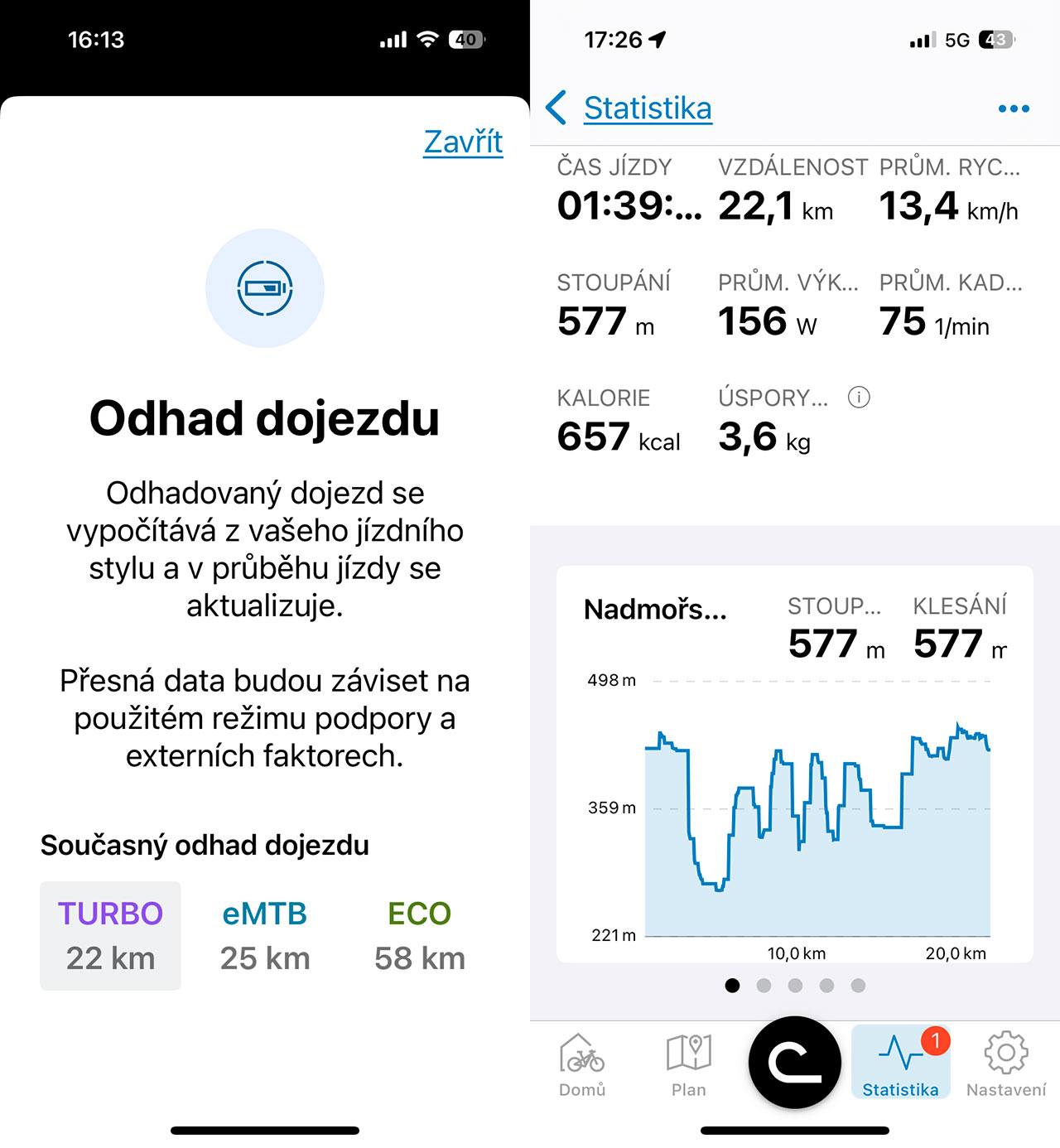 Samozřejmě jsem provedl i svůj oblíbený test dojezdu. Vzhledem k tomu, že testovaný Bulls byl osazen menší 600Wh baterií, nečekal jsem žádné zázraky. Mimochodem – součástí nového Smart Systemu je i chytrá aplikace Bosch pro mobilní telefon. Pokud ji správně spárujete s ebikem, umožní nejen detailní nastavení motoru, ale také zaznamenává vaši trasu a výkon. Bez této aplikace se neobejdete ani při nastavování automatického řazení, a pomůže také při optimalizaci nastavení režimu ABS – ale o tom až v dalších kapitolách.