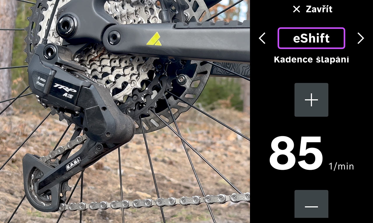 V praxi to znamená, že při dosažení vyšší kadence kolo sice přeřadí na lehčí převod, ale vzápětí chaoticky vrátí řetěz zpět na menší pastorek – a to zrovna ve chvíli, kdy byste naopak potřebovali zařadit ještě lehčí převod. Opakovaně se mi to stávalo třeba při výjezdech na trailech, kde se sklon kopce mírně zlomil, ale hned následovala utažená zatáčka. Pro její projetí bych potřeboval lehčí převod, jenže systém mi místo toho naservíroval těžší – a to i při nastavené a vyzkoušené kadenci 80 až 85 otáček za minutu. To samé se pak dělo třeba i během přejíždění kolejí na polní cestě, kde stačilo krátké ubrání při přejezdu z jedné strany na druhou aby systém stačil podřadit, protože prostě dopředu nevěděl, že kopec pokračuje, jen jsem potřeboval změnit stopu.