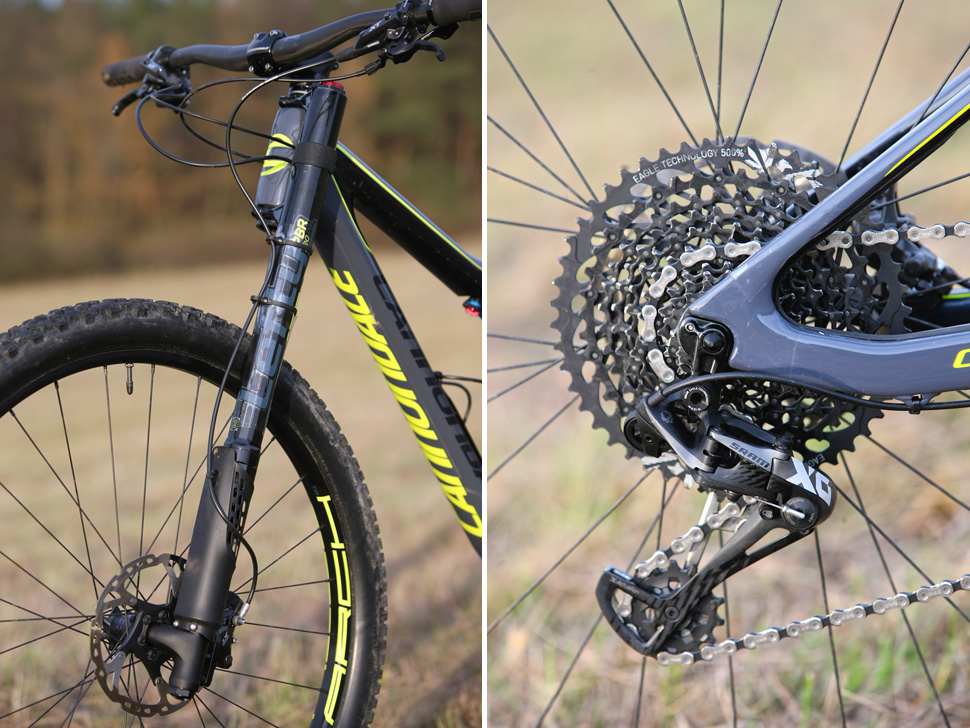 Zbytek osazení už žádná velká hitparáda není. Jde o hliníkovou klasiku Cannondale, kterou vylepšuje Fabric Scoop Flat Race sedlo s titanovými ližinami. Za zmínku zde stojí ale fakt, že oproti klasickému Scalpelu tady najdete ktratší 60mm představce a místo pevných řídítek pak nízké 760 mm široké vlaštovky. Testovaný bike jsme měli k dispozici ve velikosti L a bez pedálů jsme ho navážili 12,68 kg. Za tuto porci karbonu a hliníku po vás bude žádáno 149 999,- Kč.