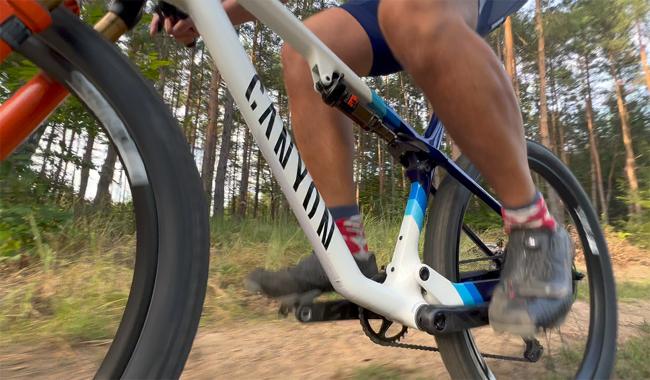 Přesto, že zde byly pod představcem něco jako tři podložky, úchop řídítek mi zpočátku připadal hodně nízký. Na druhou stranu velikost L u Canyonu nepřináší nijak zásadně dlouhý reach (mám vyzkoušeno, že bych zvládnul i velikost XL) a proto celkový posed a pozice na kole, byť byla hodně sportovně pojatá, nepůsobila nijak zvlášť krkolomně.