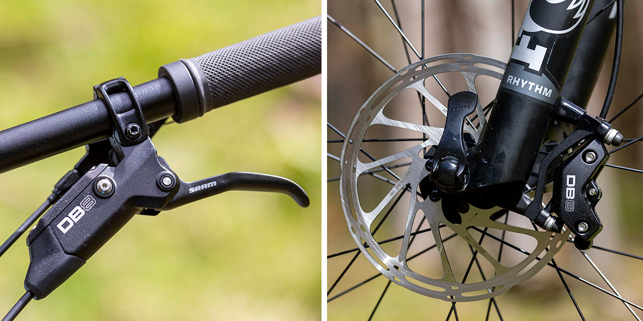 Co zarazí ještě víc, je použití Sram DB8 kotoučových brzd. Nebývá častým jevem kombinovat Shimano specifikaci pohonu se Sram brzdami, byť v této cenové relaci dává zřejmě smysl osadit raději základní čtyřpístky než podřadné montážní MT200. Ocelové Centerline kotouče jsou zde v průměru 180 mm na obou kolech.