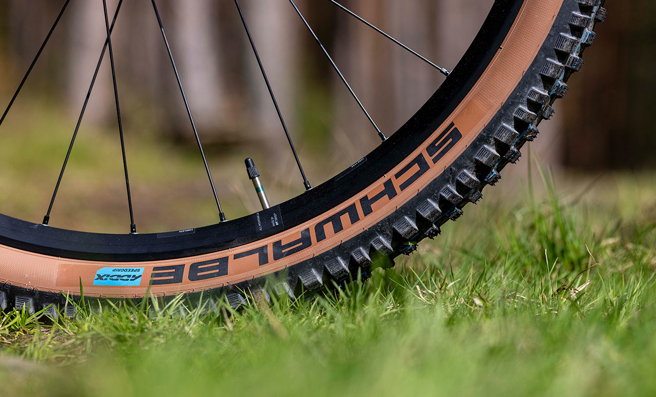 Zapletená kola na testovaném biku najdete sice v levnější specifikaci AM LN 370, ale stále s logem DT Swiss, což je záruka kvality. Obutí ve stylovém provedení se světlými, resp. bronzovými boky dodalo německé Schwalbe, konkrétně model Nobby Nic v rozměru 29x2,4" vpředu a Wicked Will ve stejné šířce vzadu.