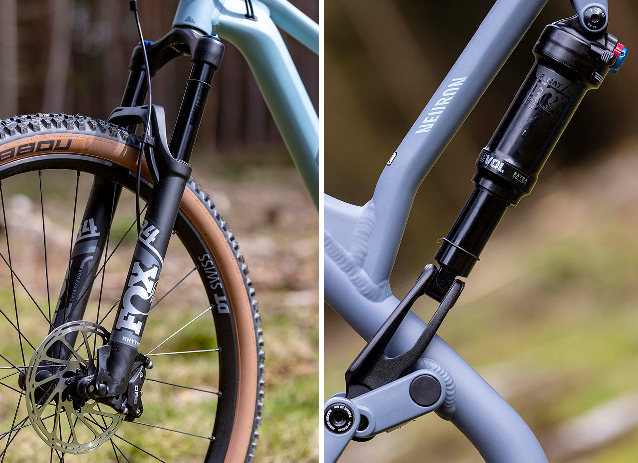 Ohledně podvozku tu najdeme základní dostupnou vidlici Rhythm 34 od Foxu, doplněnou o tlumič Float DPS Performance stejného výrobce. V obou případech jde o vzduchové odpružení s možností regulace útlumu až téměř do úplného zavření.