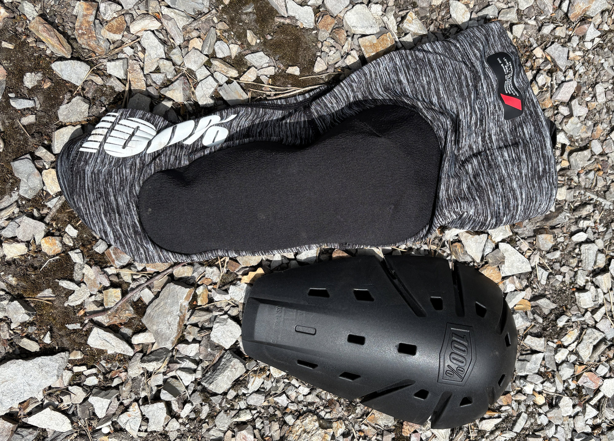 Jako ochranný materiál je použita adaptivní pěna SmartShock® pocházející přímo od značky 100% ve viditelně silnějším, nikoliv však zásadně těžším provedení ve srovnání se zkoušeným POCem. Ani zde nechybí ergonomické tvarování ochranné vrstvy, pouze otvorů pro odvětrání je méně. Určitou specialitou chráničů 100% Teratec je možnost snadného vyjmutí ochranné pěny z „kapsy“ uvnitř návleku. V provozu dost možná oceníte i výrazná reflexní loga.