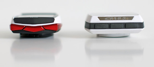 Nejprve si tedy představíme technické stránky obou cyklocomputerů. CM devítka je oblečena do bílého obalu doplněného po stranách o černý gumový proužek, na kterém se nachází na straně směrem k cyklistovi trojice ovládacích tlačítek. Ta mají poměrně jasně čitelný krátký chod zakončený malým, ale zřetelným chrupnutím.