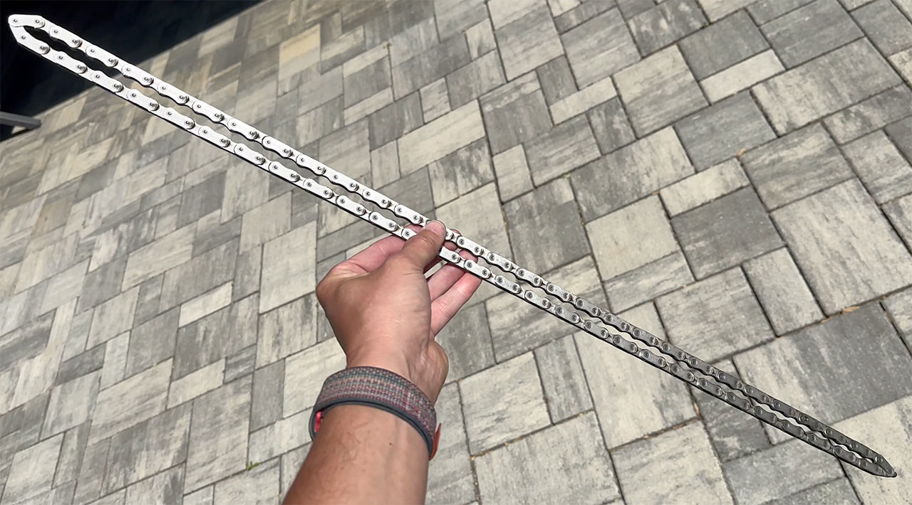 Pokud by v řetězu zůstaly nějaké nečistoty, případně dokonce zbytkové mazivo, vosk by v čepech řádně neulpěl a nedokonale vyčištěné čepy řetězu by zůstaly pravděpodobně volné a nedokonalost namazání by je prozradila. Jenže v obou případech aplikace evidentně proběhla korektně, protože oba řetězy po dokonalém vyschnutí a ztuhnutí vosku držely po sundání z odkapávacího drátku brilantní přímku. Což jsem sice už několikrát chtěl vyzkoušet, ale nikdy na to nedošlo, protože testy různých jiných konkurenčních vosků přede mnou dělali mí redakční kolegové. Budiž toto lehce jiný pohled na aplikaci vosku, který po mně samozřejmě nemusíte opakovat, ale jako zajímavý joke pro nachytání kamaráda je celkem cool záležitost mu ukázat takto ztuhlý řetěz :-)