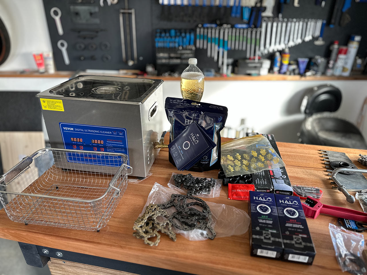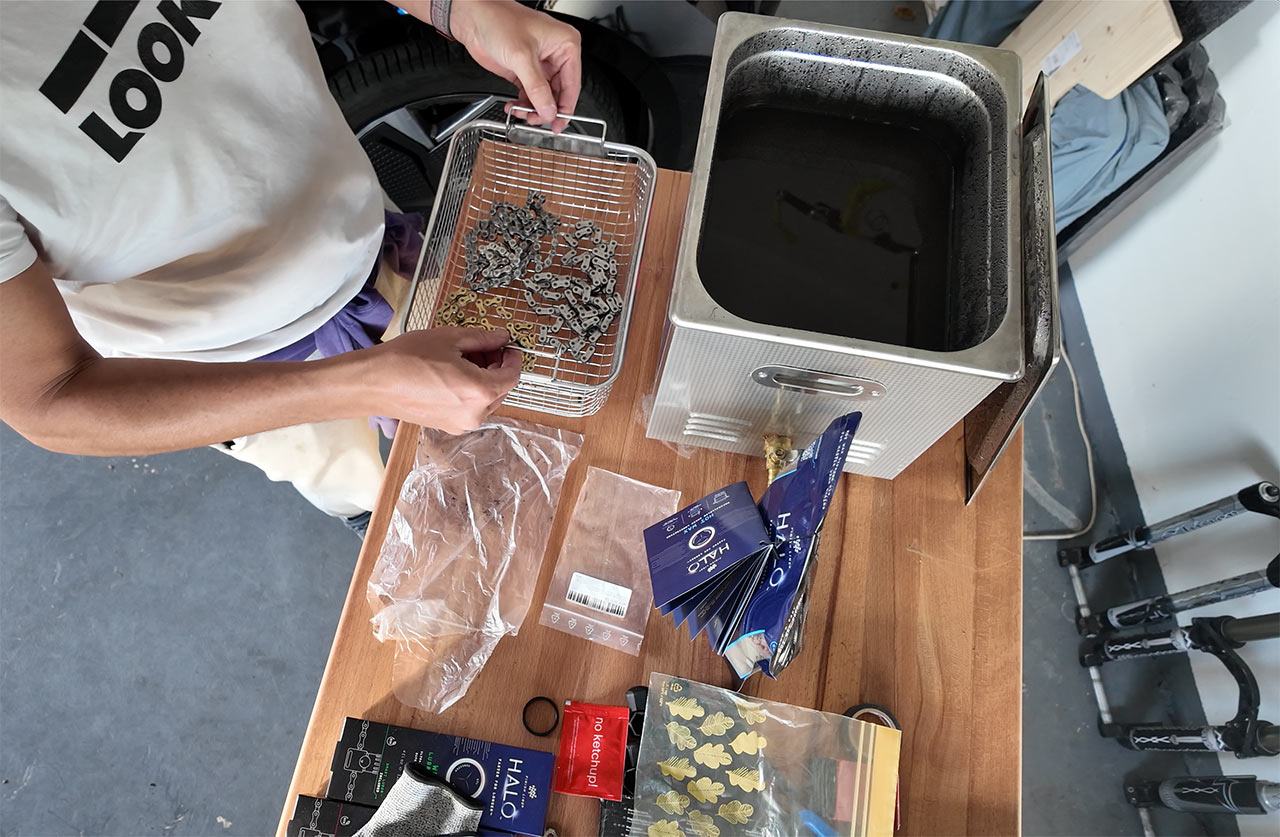 Jednou z nejúčinnějších metod, jak se zbavit nečistot, je použití ultrazvukové myčky, v rámci které dochází ke kombinaci chemického a ultrasonického čištění řetězu, přičemž nečistoty jsou vibracemi vyplavovány a usazují se na dně myčky. Tuto metodu jsem zvolil v rámci mého testování já, a jelikož trojice řetězů, kterou jsem si pro test vosků od Finish Line připravil, byla spíše mírně špinavá, postačil jeden mycí cyklus s důkladným osušením a vyschnutím. Jelikož mě čas nijak netlačil a venku zrovna probíhala první letošní sada letních dnů, nechal jsem řetězy v klidu pořádně vyschnout do druhého dne.