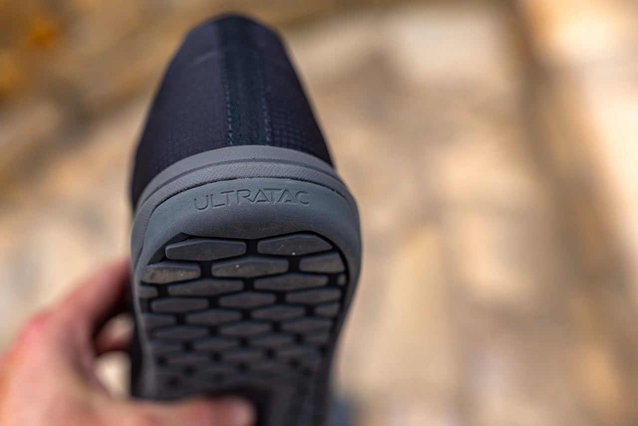 Fox tyto své boty vybavil gumovou podešví z patentovaného materiálu označeného jako Ultratac, který má být dostatečně měkký kvůli maximálnímu gripu na pedálech, ale přitom dostatečně odolný, abyste boty nemuseli každý rok měnit kvůli zničené podrážce. Mimochodem, tohle byla asi jediná věc, kterou jsem nemohl v rámci pár týdnů trvajícího testu ověřit, protože to je dlouhodobější záležitost, navíc pro člověka, který nepoužívá jen tyto tretry. Pro mě věřím, že by podrážka vydržela déle než jeden rok, minimálně kvůli tomu, že bych boty využíval jen asi z 20 % v mixu s ostatními tretrami, které používám častěji.