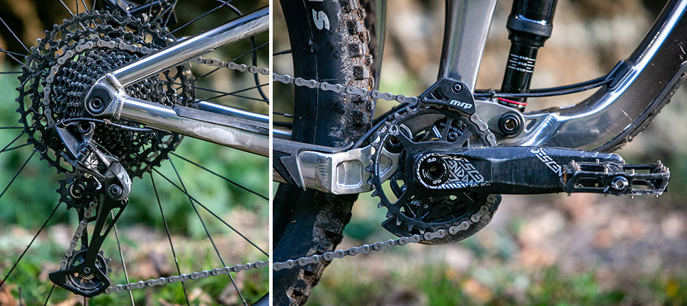 Pohon zde najdeme od firmy Sram v podobě dvanácti rychlostního NX Eaglu s 30 zubovým převodníkem a klikami TruVativ Descendant.