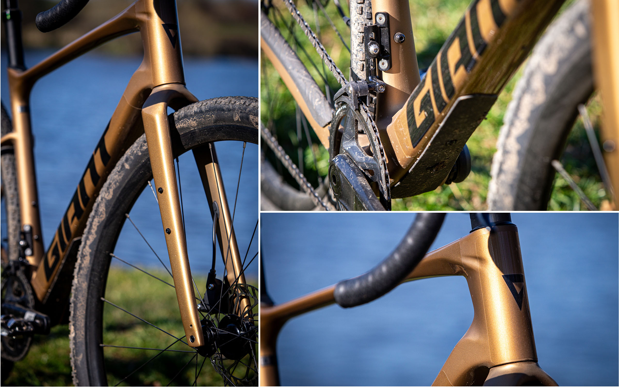 Za povšimnutí rozhodně stojí fakt, že hmotnost rámu zůstala na víceméně stejné úrovni jako u předchozí generace (cca 990 g), ač se zde objevuje právě zmíněný otvor ve spodní trubce. Šetřit se tedy muselo na řadě jiných míst. Jednoho skoro až napadá kacířská otázka: „Kdyby Giant rezignoval na aktuální trend v podobě úložného boxu v rámu, o kolik mohl být nejnovější Giant Revolt Advanced (Advanced Pro) lehčí? O 100-200 gramů?“