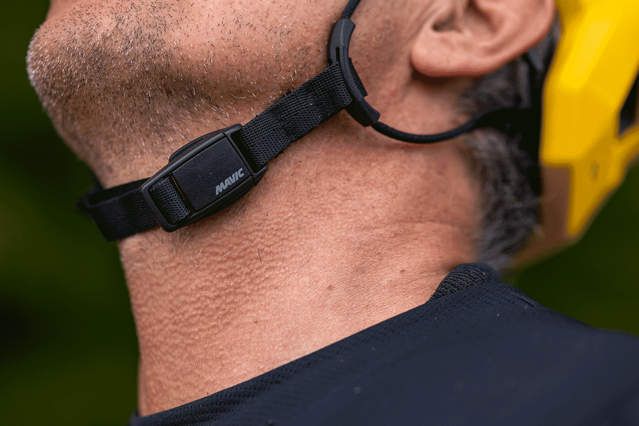Dalším velkým plusem je minimalistické řešení pásků v oblasti uší. Mavic zvolil velmi subtilní popruhy, které se uší téměř nedotýkají. Díky praktickému posuvnému systému pásku fixujícímu helmu kolem brady navíc odpadá obvyklé laborování s nastavením předozadní pozice tohoto pásku – helma prostě sedne a není potřeba se s ničím zdržovat.