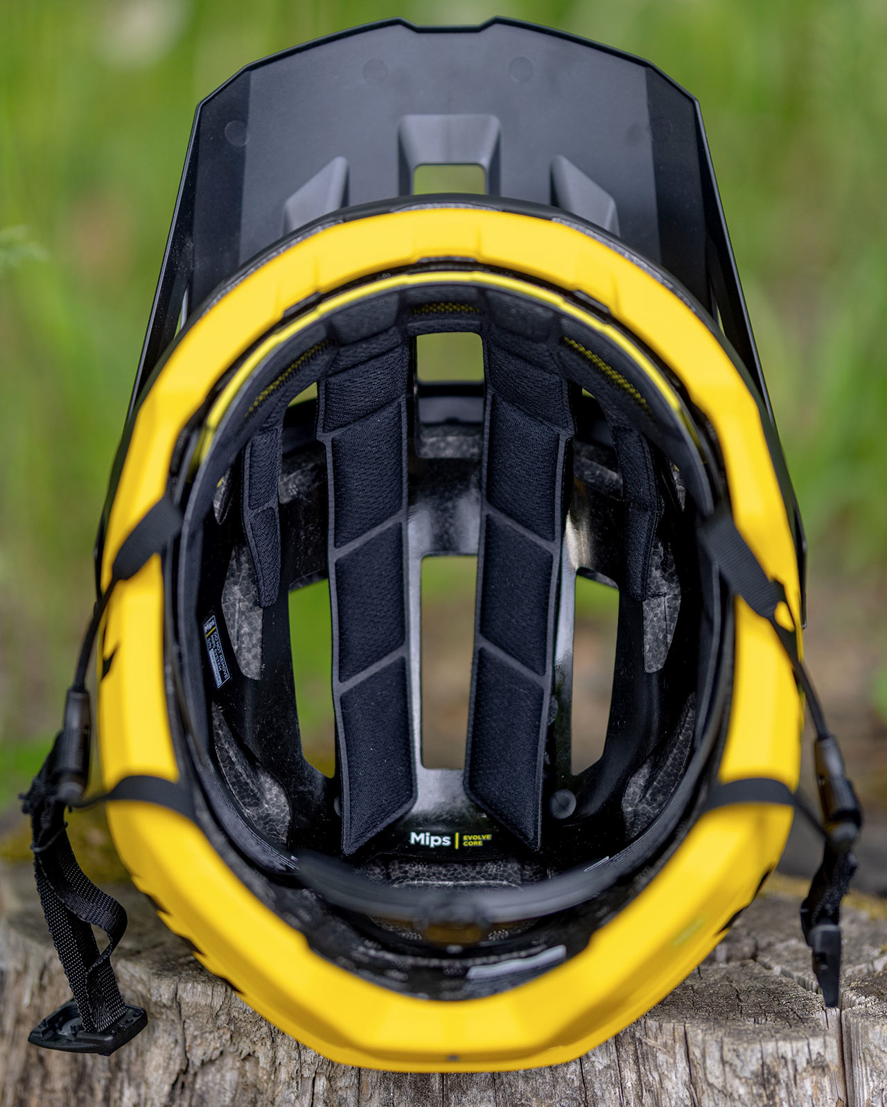 Integrovaný systém MIPS je zde klasicky zabudovaný přímo do skořepiny a má překvapivě hladký a dlouhý chod. Díky tomu přispívá nejen k vyšší bezpečnosti, ale také k pohodlnému pocitu při jízdě. Vnitřní černá MIPS skořepina přitom nijak neobtěžuje a díky tomu, že jsou na ní připevněny i dobře tvarované antibakteriální Coolmax vložky, tak se vám kvůli ní hlava ani nijak nadměrně nepotí.
