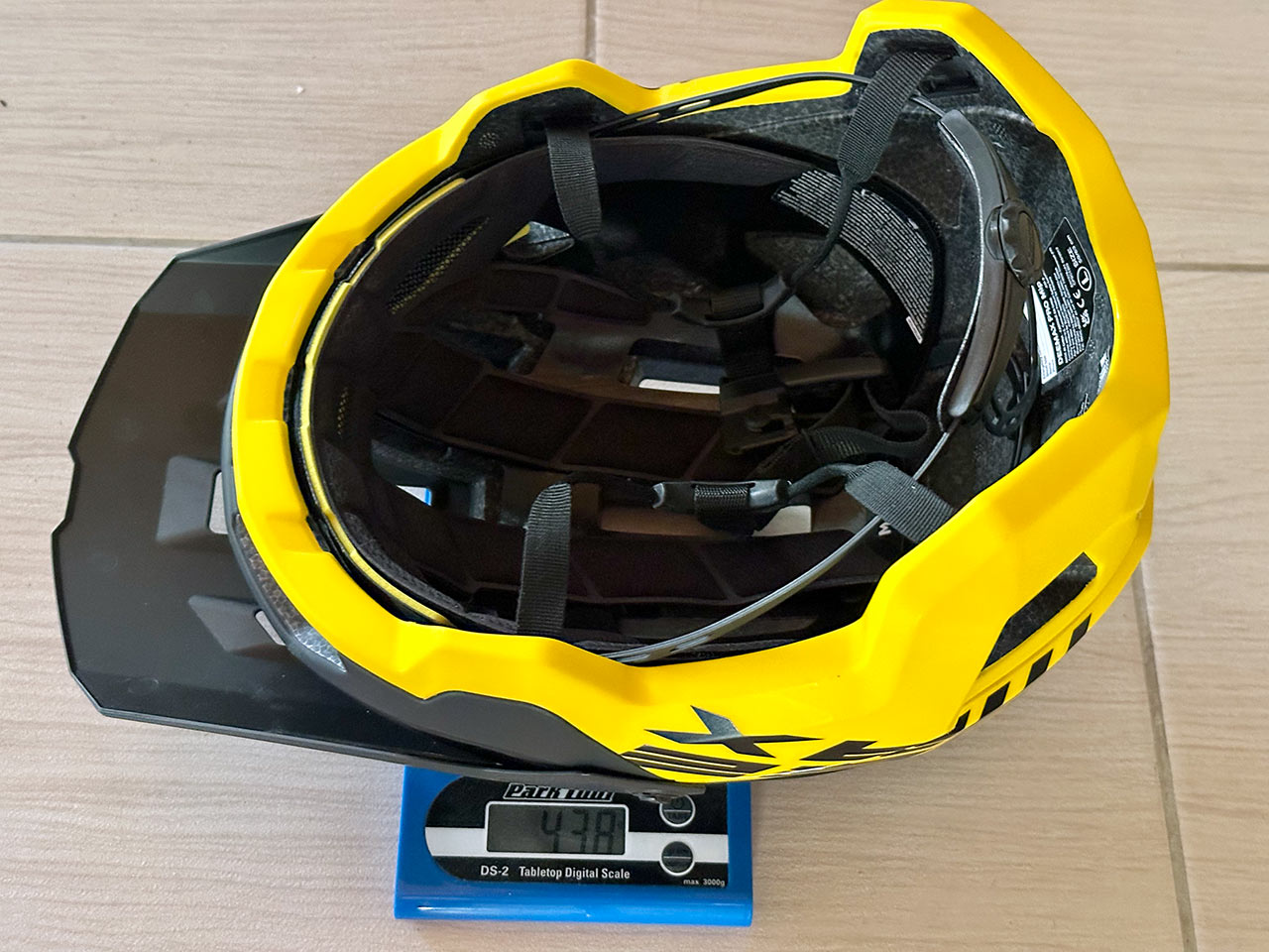 Její hmotnost bohužel není úplně nejnižší, jak to tak u největších velikostí bývá. V mé velikosti L jsem navážil přesně 438 g. Rozložení této hmotnosti je ale vyvážené a při jízdě rychle přestanete helmu na hlavě vnímat. Zásluhu na tom má i univerzální vnitřní tvar skořepiny, který dobře sedí různým typům hlav.