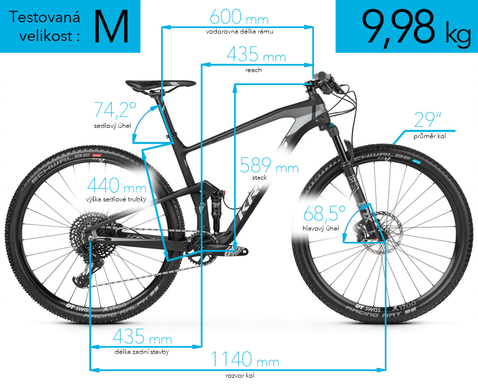První, co vás ale opravdu okamžitě bije do očí, je délka rámu a vůbec pojetí celé geometrie. Kross si dával poměrně dlouho na čas než zveřejnil kompletní geometrie tohoto modelu. Původní opis přibližných hodnot závodního biku ve velikosti S nebyl navíc úplně nejpřesnější, takže až přesné hodnoty potvrdily, co bylo vidět na první pohled.