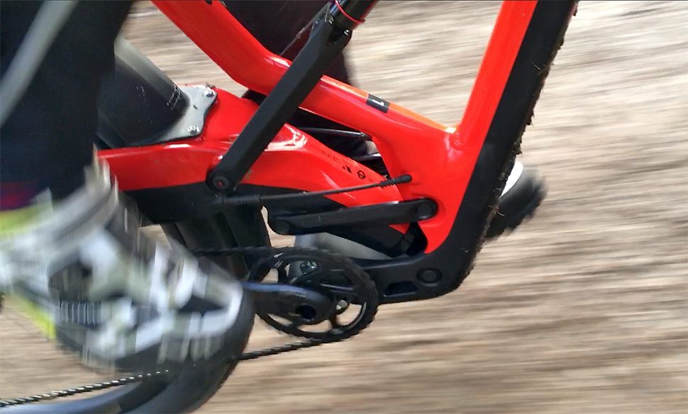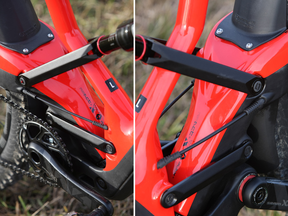 Kvůli hlavnímu, oku téměř skrytému pístu, který mimochodem chodí jen něco kolem 3 cm, je ve spodní části rámu (před středem) jakási kolébka s dalším čepem, na kterém je uchycen zmiňovaný píst. Aktivní pohyb zadní stavby pak zaručuje při jízdě z kopce skutečnost, že zadní stavba jako by vyjížděla dozadu a současně nahoru, což dává záruku toho, že pokryje většinu nerovností terénu.