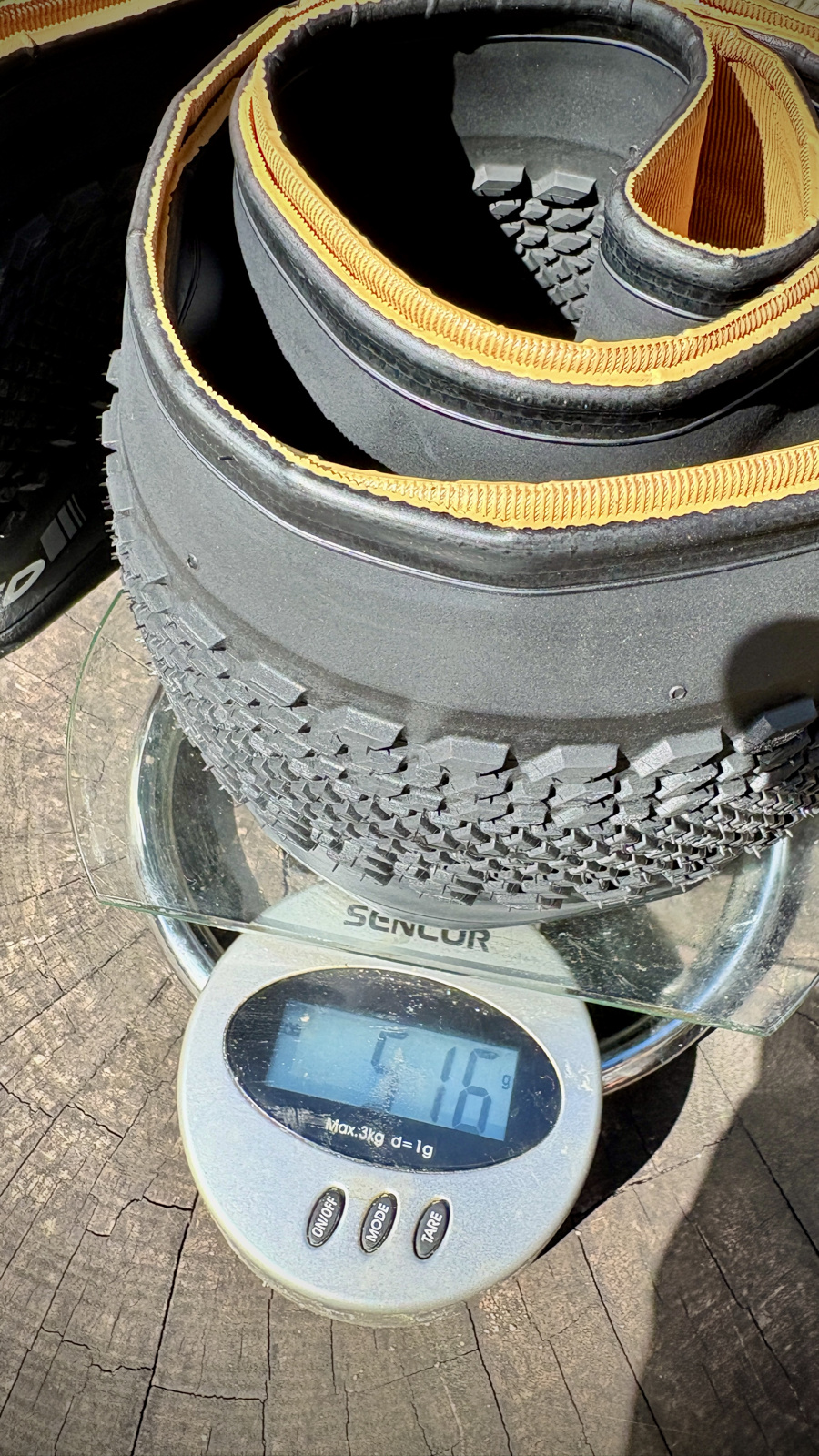 Námi testovaná šíře 48 mm vykázala reálnou šířku 47 mm, nasazena byla na ráfek s vnitřní šířkou 25 mm. Udávaná hmotnost 500 gramů byla ale poměrně mimo, jeden plášť vykazoval 516 a druhý dokonce 534 g. Rozdílné hmotnosti jsou ale běžnou praxí u drtivé většiny testovaných plášťů.