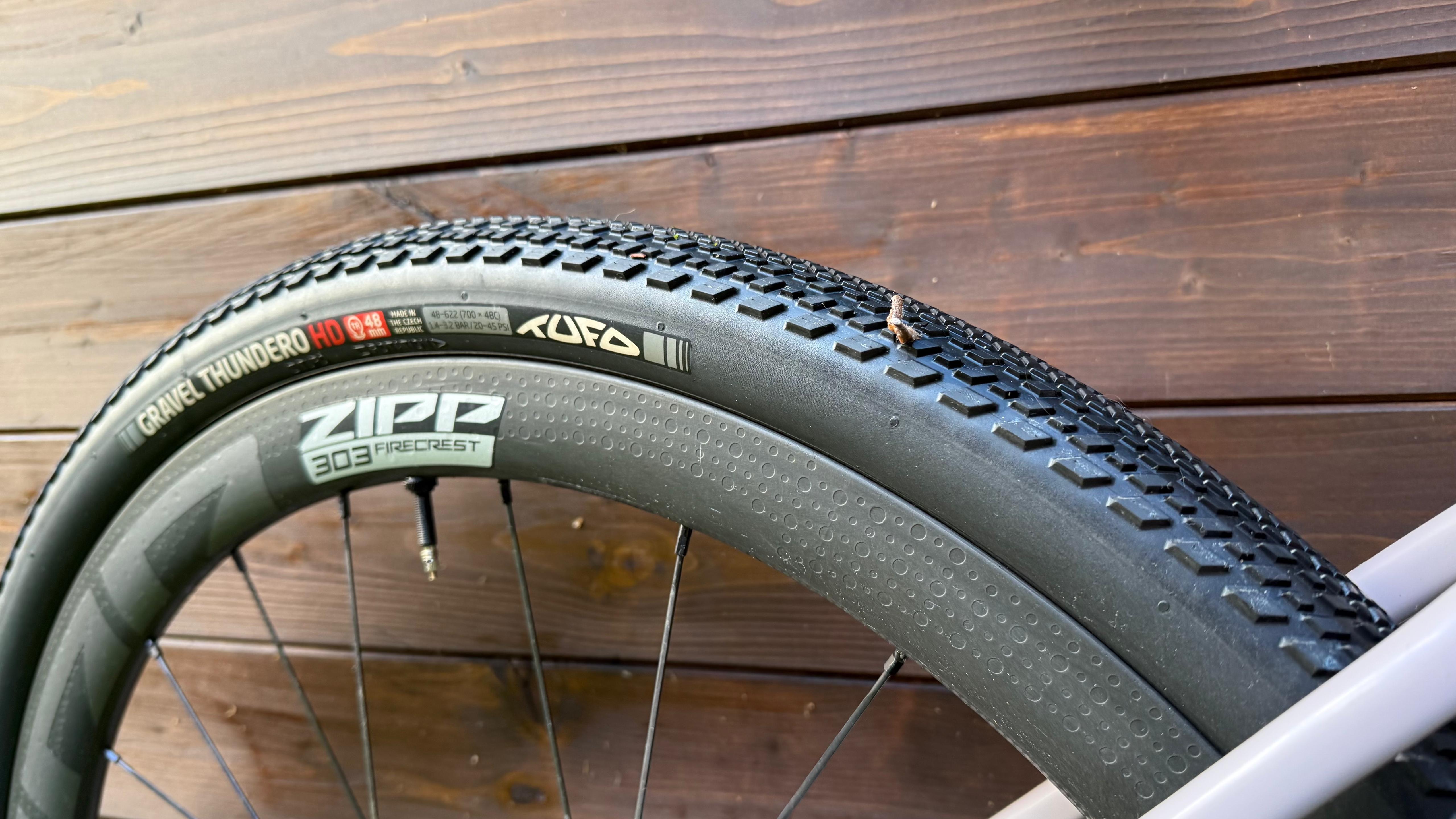 I když jsou pláště Tufo Thundero HD inzerované jako pláště s výjimečnou odolností díky vrstvě Jubena Puncture Protection, Kubovi se podařilo tento fakt jaksi prolomit. Během najetých zhruba 600 km k defektu došlo. Ale spravil do jeden Lezyne knot, který solidně drží tlak a plášť bez problémů jezdí dál.