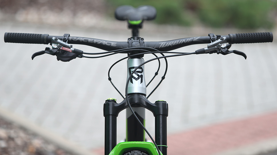 A se značkovým servisem ještě nekončíme. Rock Machine pro tento model zvolil poměrně prestižní kokpit, a to Race Face Turbine s průměrem řídítek 35 mm a šířkou 780 mm. Logicky zde najdete kraťoučký představec pouhých 35 mm s tím, že teleskopka ONE1 Alloy MT171 už pochází z vlastních zásob a sedlo Volt Pro pak od amerického WTB.