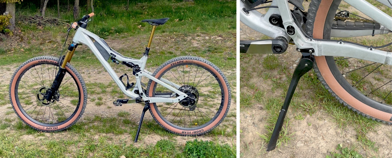 Originální brašničku jsem bohužel nestihl sehnat do uzávěrky tohoto článku, ale stojánek se mi nakonec podařilo získat – a musím říct, že i když si nedovedu představit enduristu, který by s ním vyrazil na závod, pro běžné užití to je super praktická věc.