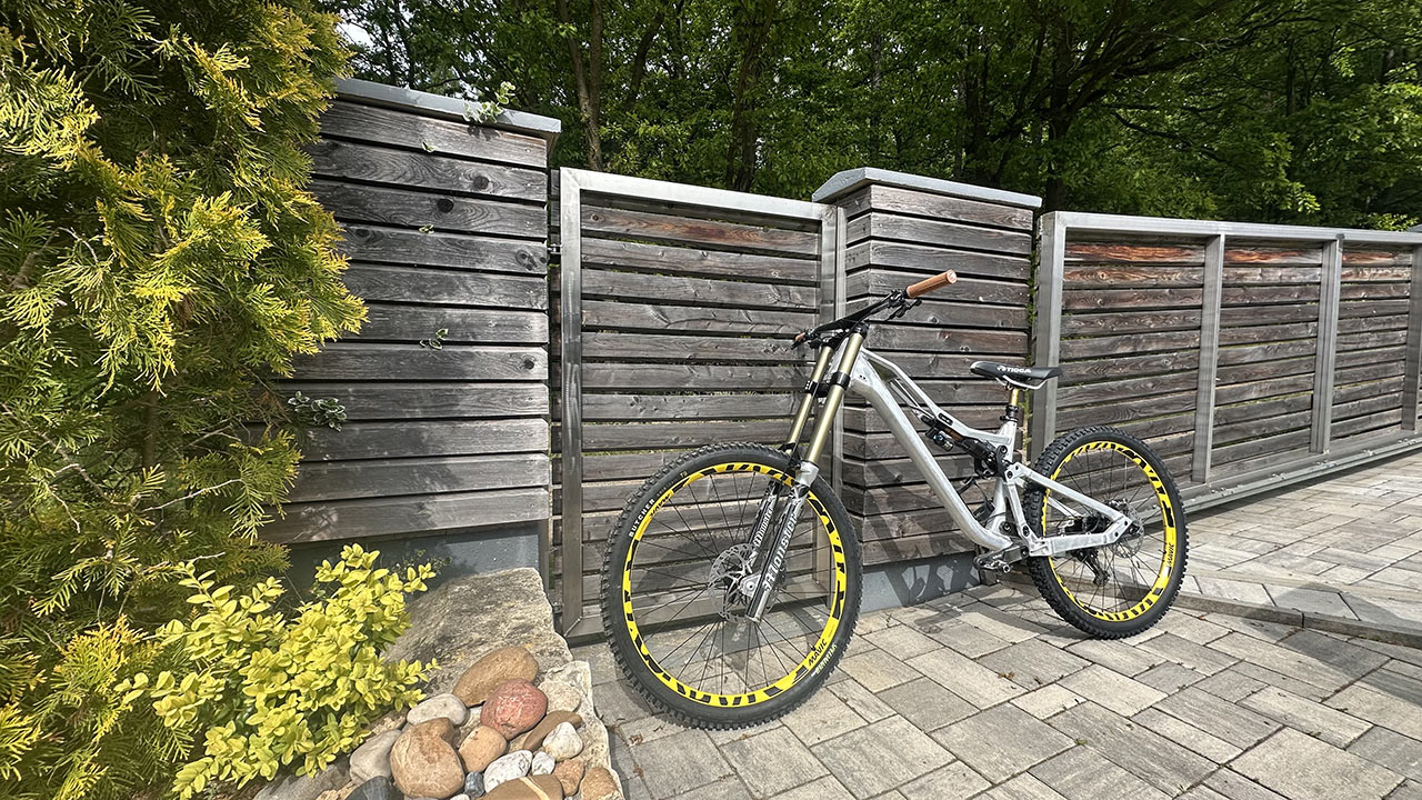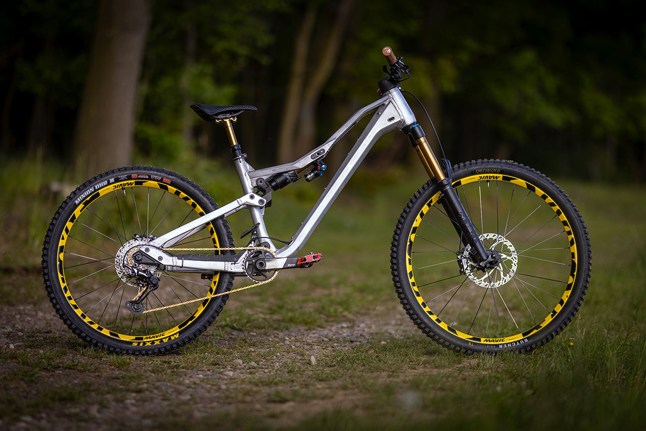 Kdybych si měl vybrat, nejvíc mi seděla asi lehká trail-enduro varianta s karbonovými koly a Fox Factory podvozkem. Ale nostalgie mě nakonec dohnala k tomu, že jsem kolo na poslední focení obul do žlutých DeeMax kol – a výsledek vypadal také dost dobře, i když se hmotnost přehoupla přes 16 kilo.