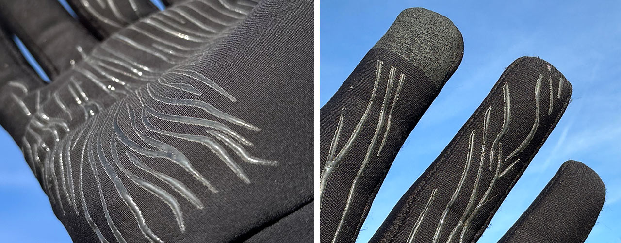 Rukavice působí velice lehkým dojmem. Pohyb v nich je přirozený, nikde vás neomezují kvůli tužším panelům nebo švům a musím potvrdit, že silikonové „Tiger“ proužky, které jdou po celém povrchu rukavic, fungují opravdu skvěle, ať už se bavíme o bikových gripech, nebo gravelových omotávkách. Dlaň je spolehlivě fixovaná, nemá absolutně žádnou tendenci se smýkat a úchop je v těchto rukavicích stejně jako brzdění velice jistý a přitom pohodlný.