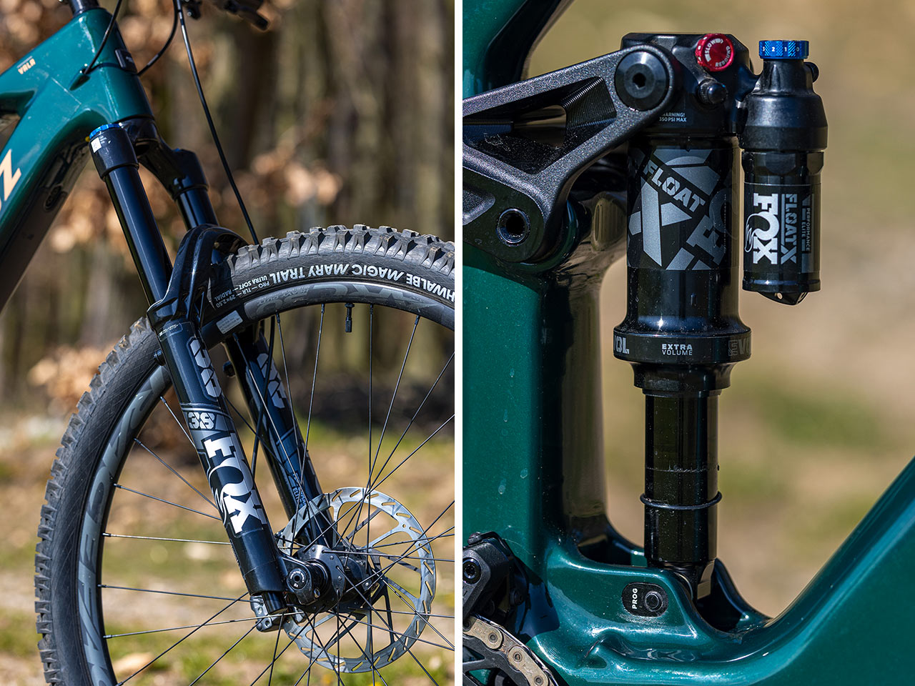 Podvozek zde počítá s osvědčenou specifikací Fox Performance Elite – a to vpředu díky vidlici 38 Float vybavenou zdvihem 160 mm a tlumicí patronou Grip X2, a vzadu pak vzduchovým tlumičem Float X ve specifikaci 205×60 mm, vybaveným páčkou lockoutu, který obsluhuje pro změnu 150 mm zadního zdvihu.