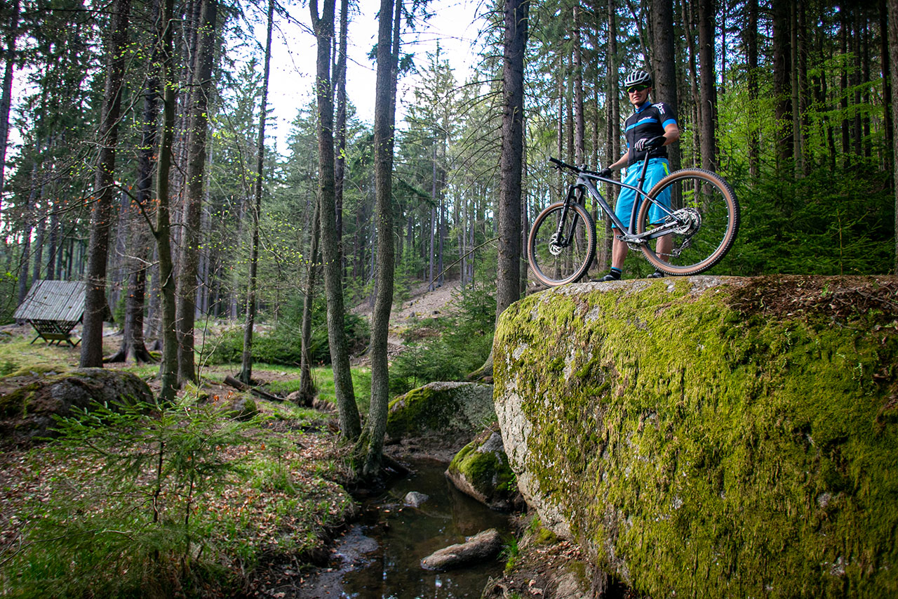 Bajk se v opravdu technických pasážích stává trochu neobratným. Do kopce jede dobře vždycky, jen je v současných suchých podmínkách potřeba si trochu dávat pozor na podklouznutí. Můžete se pak nepříjemně kopnout kolenem do páčky zamykání vidlice. Členité a hlavně rozbité traily jsou jeho slabinou. Útěchu nepřinesou ani „gramařské“ gripy, ale na jejich obranu je potřeba zmínit, že ani v delších sjezdech jsem necítil křeče v dlaních, a to rozhodně nebývá výjimkou, když toho nemám v sezoně na bajku zas tolik naježděno.