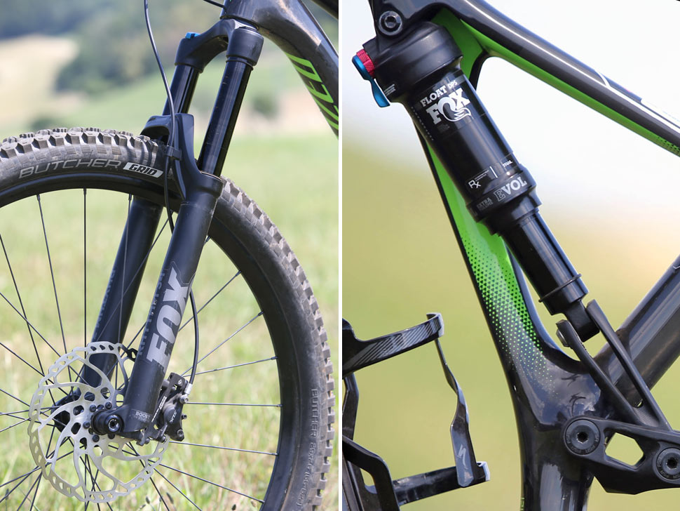 Ale zpět k testovanému biku. Odpružení tady najdete komplet od Foxu. Vpředu pracuje základní model Rhythm 34 se 150 mm vzduchového zdvihu. Oproti první verzi má tahle už černé vnitřní kluzáky, a tudíž vylepšený chod. Ladit se pak dá také celkem obstojně včetně odskoku. Tlumič Fox Float Performance DPS umí třípolohové ladění tlumení díky modré páčce i regulaci odskoku červeným kolečkem. Vnímavé jedince ale jistě napadne otázka co Autosag? Ano, Specilized ho opravdu zrušil a na žádnem SJ biku ho už nenajdete.